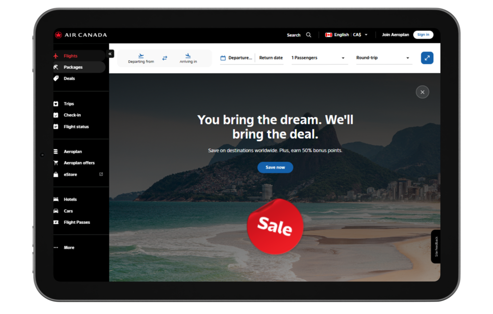 Go to the official Air Canada website to start searching for award flights.