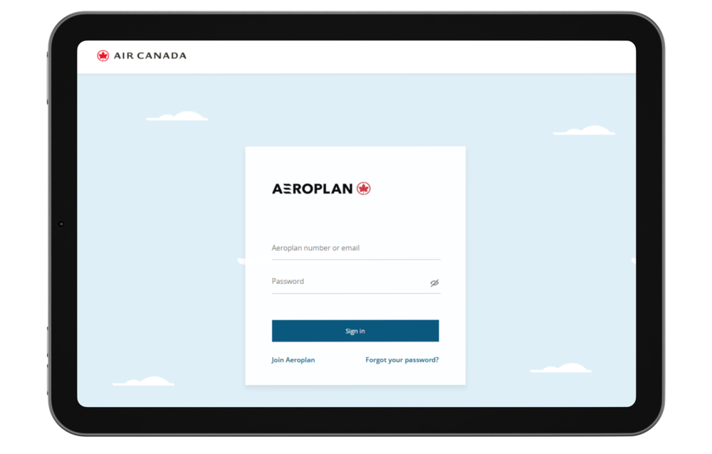 Use your email and password to log in to your Aeroplan account.